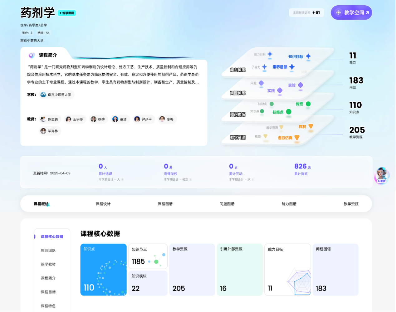《药剂学》创新“课程思政图谱”,将职业道德、文化自信融入教学全流程。例如,通过“欣弗事件”案例剖析,引导学生树立药品安全责任意识;结合中药经皮给药制剂研发进展,激发创新自信。知识图谱涵盖691个核心知识点,关联PPT、视频、实验库等多维资源。AI助教提供“制药工艺模拟”功能,学生可在线设计制剂方案并获得智能反馈,学习过程兼具科学性与人文温度。