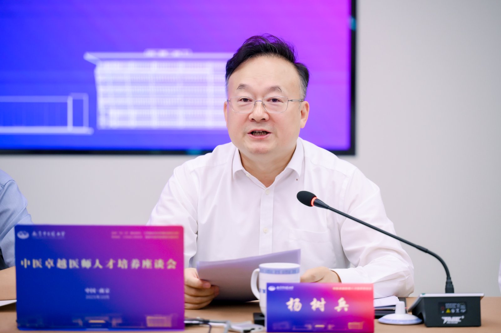 杨树兵在致辞中代表江苏省教育厅向莅临会议的各位来宾表示欢迎,并对座谈会的召开和联盟的成立表示祝贺。他表示,近年来江苏形成了学科专业覆盖全面、特色优势较为明显的医学教育体系。江苏省教育厅正在以“改革破题、创新赋能、协同发力、高质量发展”为核心路径,期待与全国中医药院校深化合作,共同推动中医卓越医师人才培养再上新台阶。他提出几点思路与与会嘉宾交流:一是强化基础理论和临床实践前沿成果的融入;二是推动人工智能赋能中医人才培养改革的创新;三是强化科教融汇和产教融合,探索学科交叉育人路径,推动中医教育与区域产业同频共振、与民生需求精准对接。