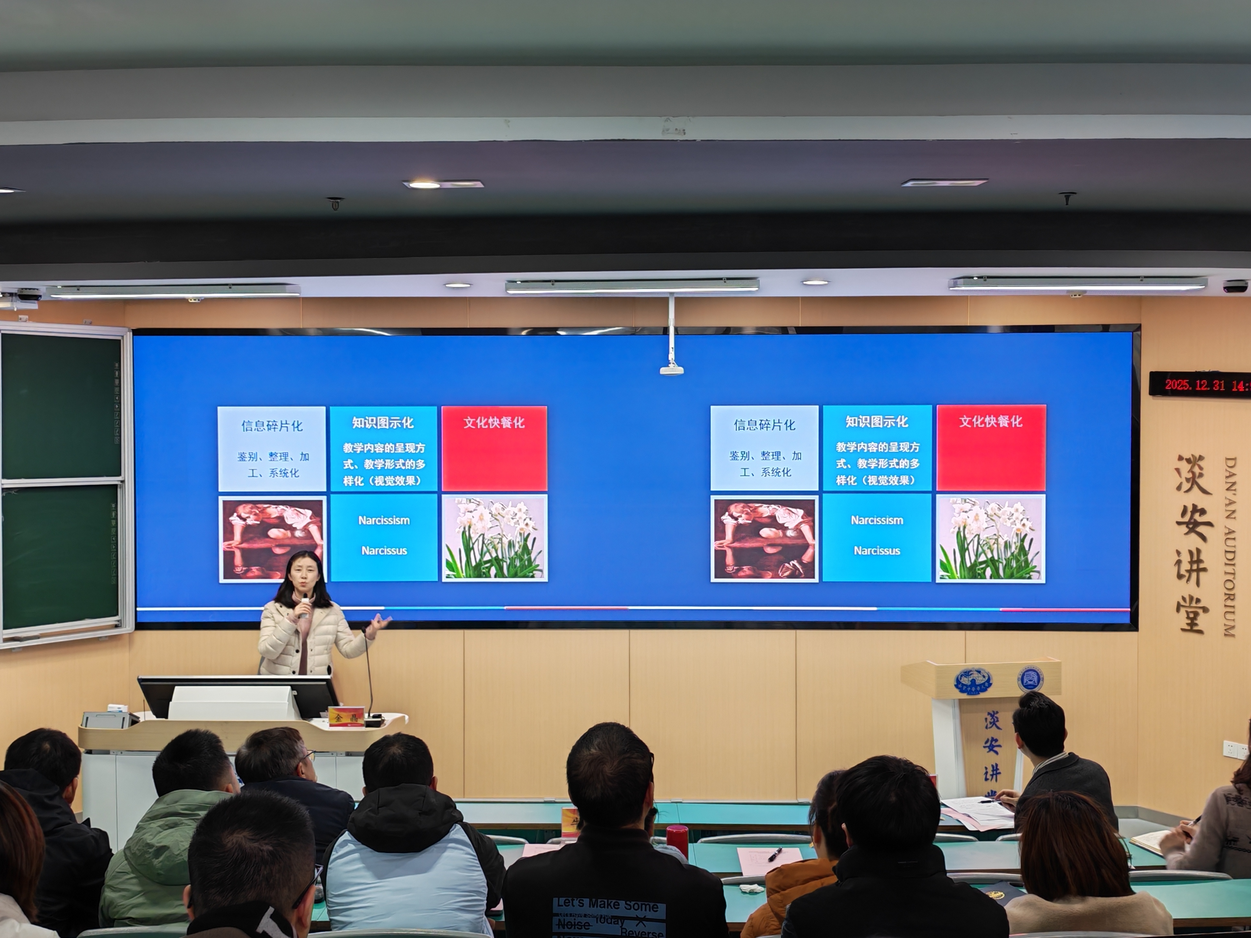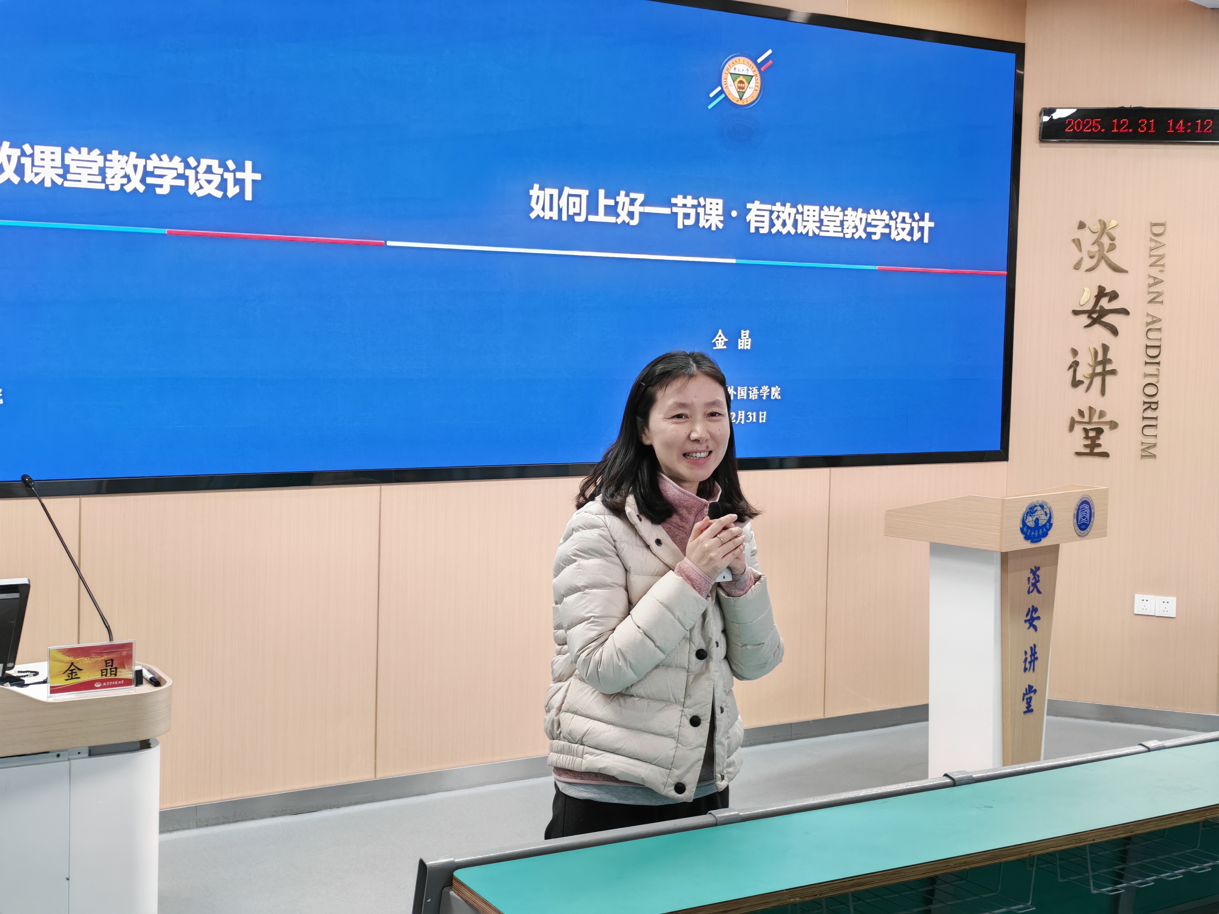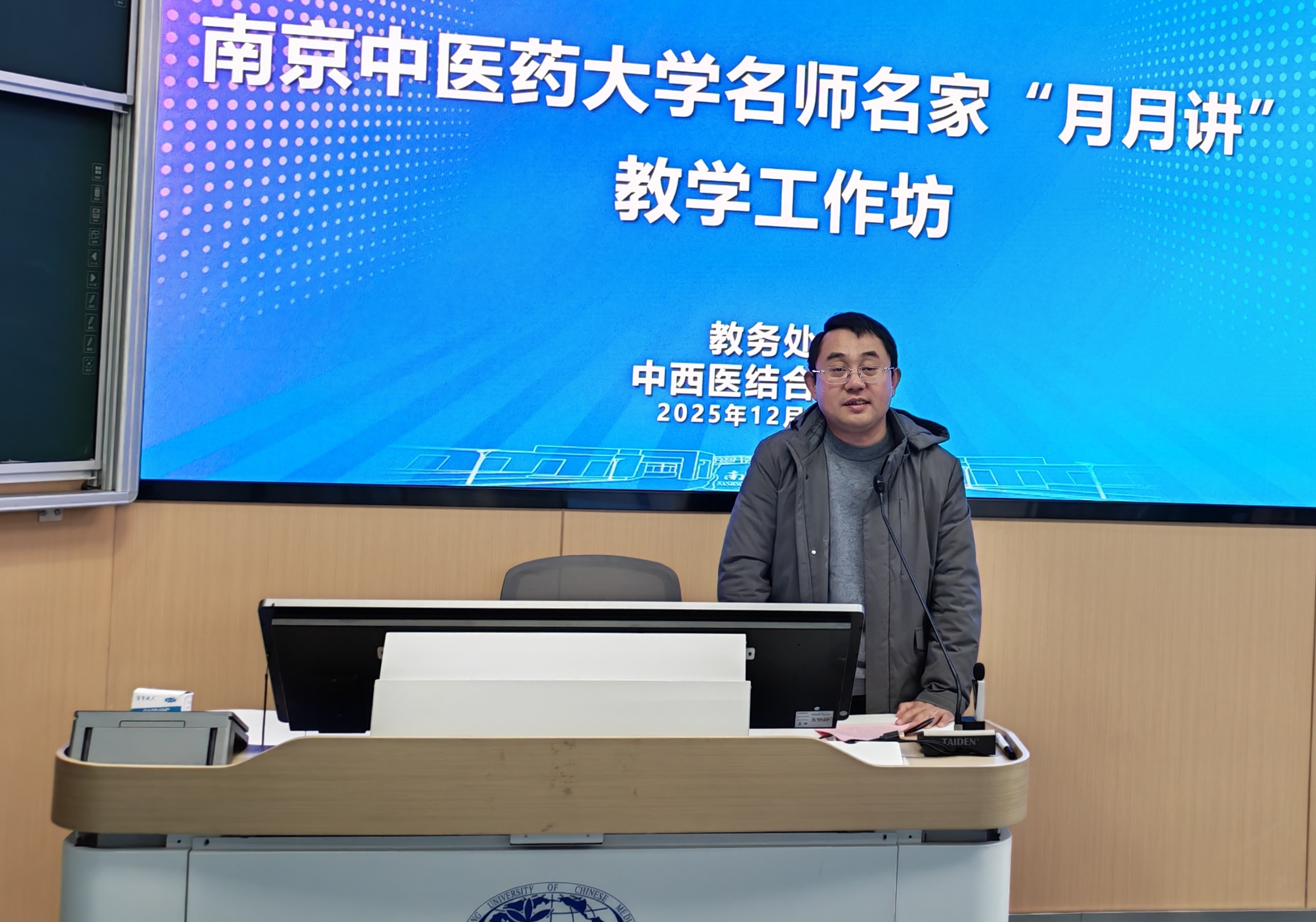 2025年12月31日,南京中医药大学名师名家“月月讲”教学工作坊本年度最后一场讲座顺利举办。本次活动由教务处主办、中西医结合学院承办,特邀东南大学金晶教授带来“有效课堂教学设计”专题分享。教务处副处长牛浩出席活动,全校各教学单位约75名教师代表参与。活动由中西医结合学院副院长陶伟伟主持。