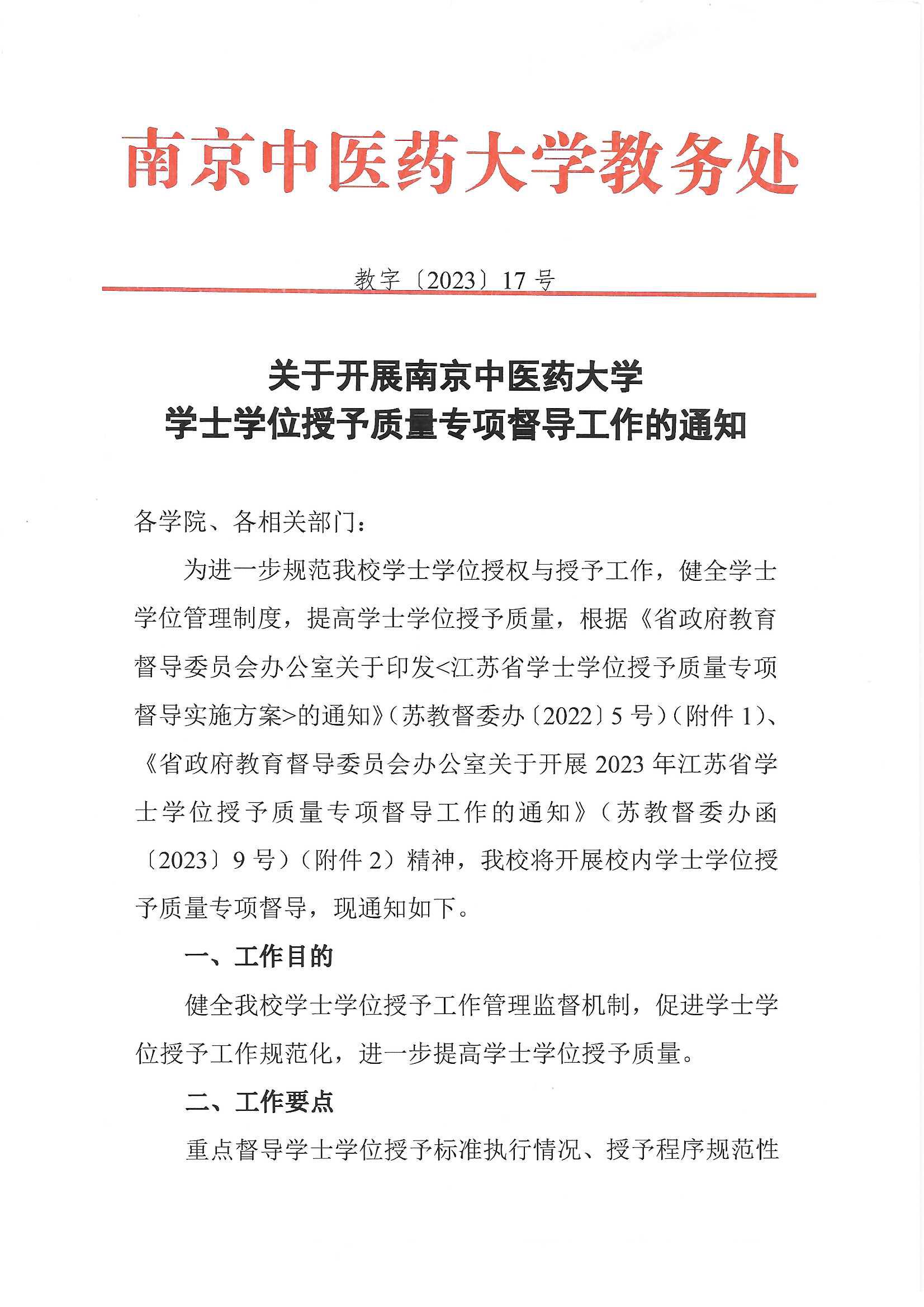 关于开展南京中医药大学学士学位授予质量专项督导工作的通知