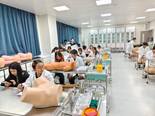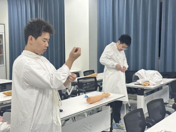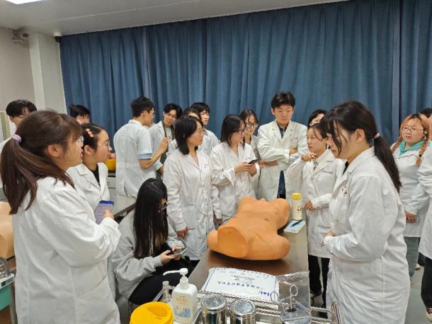 本次实训以中医师岗位胜任力考核、执业医师考试实践技能考点为核心强化方向,覆盖胸腔穿刺、外科无菌术等多项核心实践技能,采用 “学生自主练习 + 教师现场指导” 模式。教务处按计划配备专项指导教师,中西医结合学院同步增派专业师资,多方协同强化实践指导,扎实夯实临床能力根基,助力学生顺利完成从医学生到实习医师的角色转变,为高质量临床实习和培养新时代卓越中医人才筑牢坚实基础。