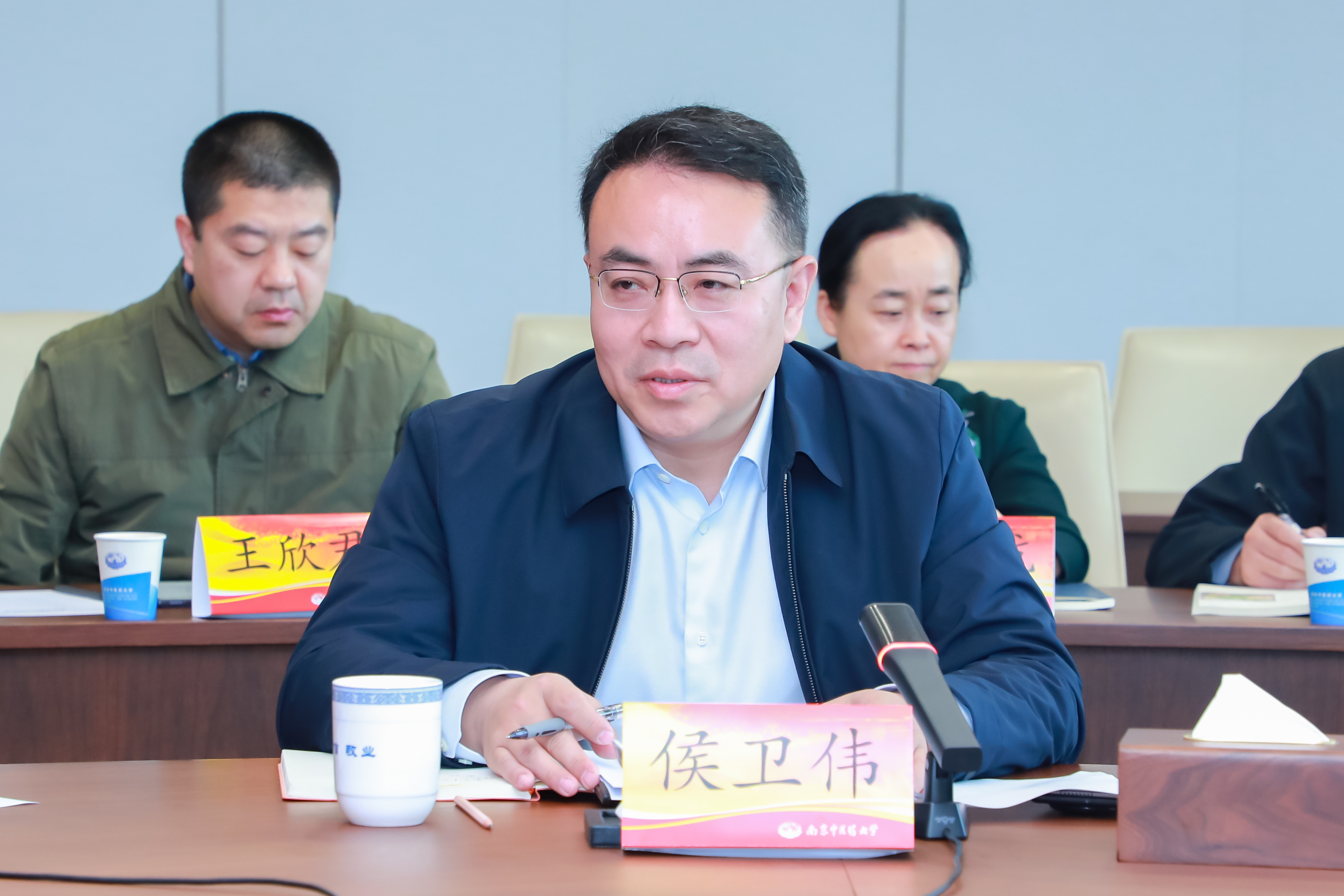侯卫伟在致辞中介绍了出版社近年来推进“三个转型”的工作思路和实践探索。他表示,中国中医药出版社与南京中医药大学有长期的合作基础,一直保持紧密的合作关系。此次协议的签署,标志着双方合作迈入新阶段。出版社将充分发挥专业优势,与学校携手并进,在高水平教材建设、学术资源挖掘、数字化建设及出版工作室共建等方面深化合作。